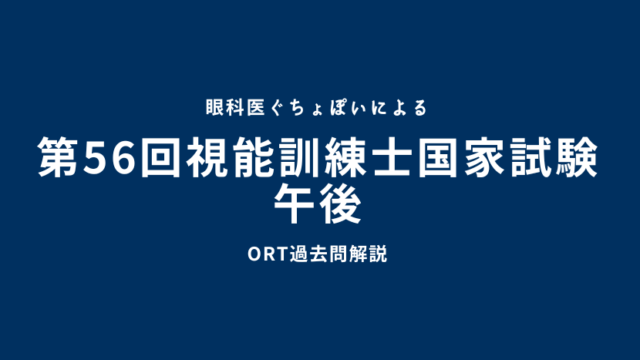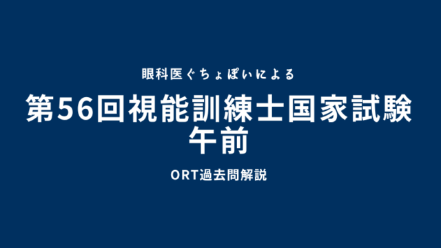視能訓練士国家試験解説【解答速報】視能訓練士国家試験 第56回 午前 過去問解説 2026年2月19日 guchopoi https://guchopoi.com/wp-content/uploads/2021/05/ddfeb33f0e0081c01989ec16dbf6359a.png 眼科医ぐちょぽいのオンライン勉強会